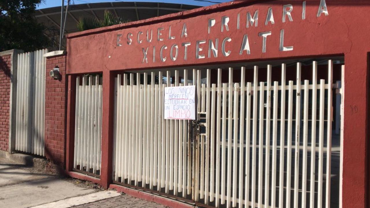 Con una pancarta que decía "Los niños merecen estudiar en un espacio limpio", ayer fue suspendido el inicio del ciclo escolar 2023-2024 en la escuela primaria Xicoténcatl, ubicada en la colonia Fuentes del Sur del municipio de Torreón.
