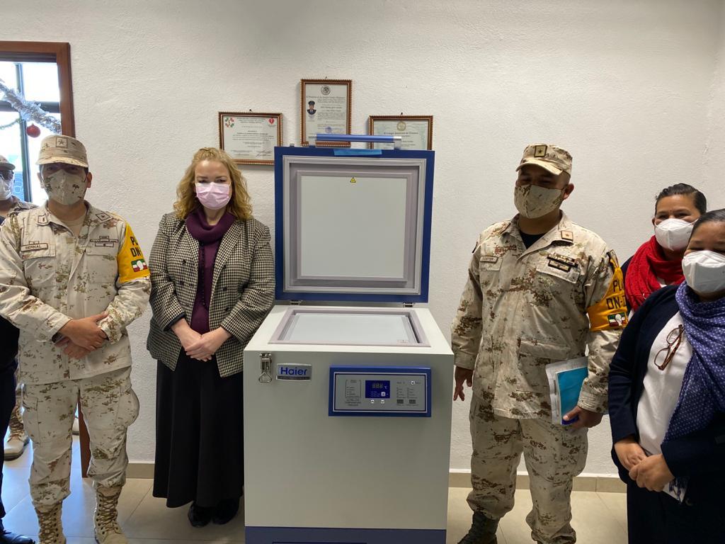 Ayer sábado fue entregado de manera oficial a la comandancia del 12º Regimiento de Caballería Motorizada de la Secretaría de la Defensa Nacional (Sedena), el congelador especial para el almacenamiento de la vacuna contra el COVID-19 de la empresa farmacéutica Pfizer, el cual fue adquirido por la administración municipal de Piedras Negras.