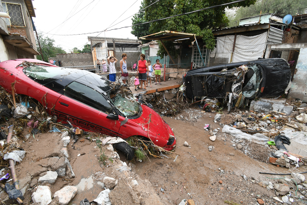 La fuerte lluvia registrada la noche del miércoles provocó que el agua de los cerros corriera por los arroyos de la colonia Polvorera y otras aledañas, llevándose a su paso varios vehículos y basura de todo tipo, además de meterse a decenas de casas.