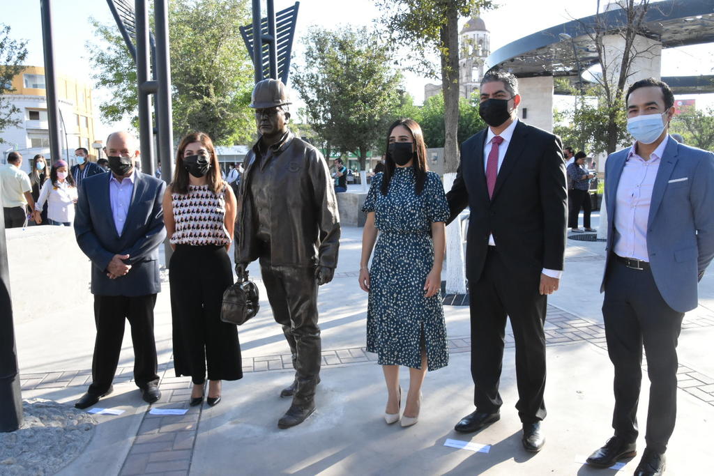 Con la presencia de la secretaria de Cultura, Ana Sofía García Camil, el alcalde Jesús Alfredo Paredes López junto con su esposa Pamela Garanzuay y otros invitados, develó los cuatro monumentos vivos de la plaza principal, como parte de las actividades culturales por el aniversario 332 de la fundación de Monclova.