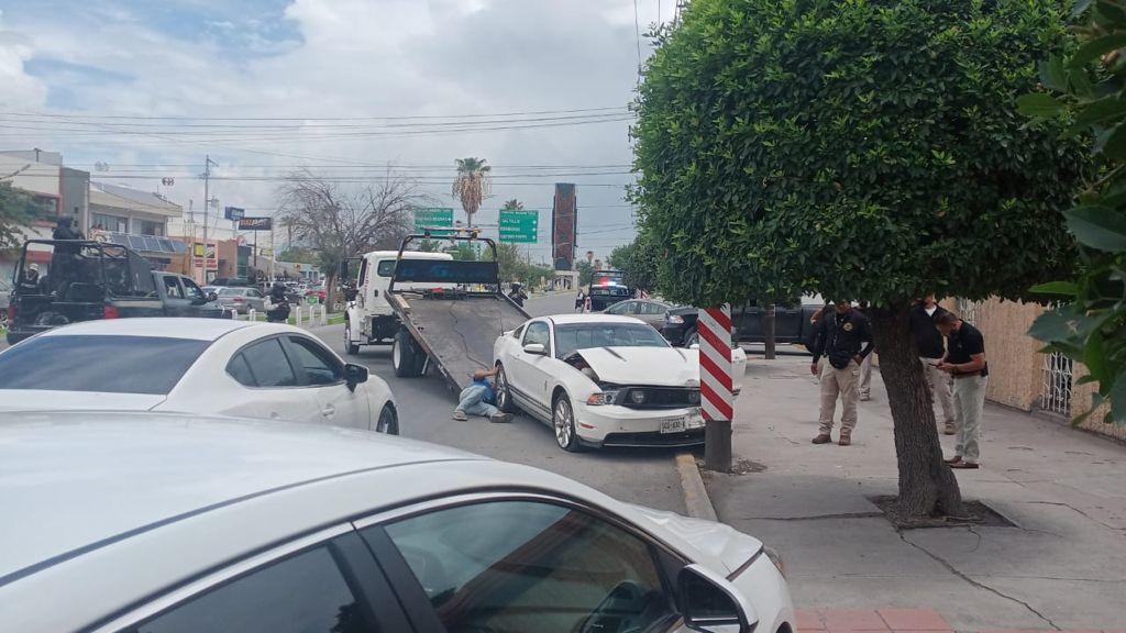 Los hechos ocurrieron poco después de las dos de la tarde de este miércoles, cuando los elementos policiacos se aproximaron a un vehículo al parecer Mustang, cuyo conductor se dio a la fuga al ver a los agentes.