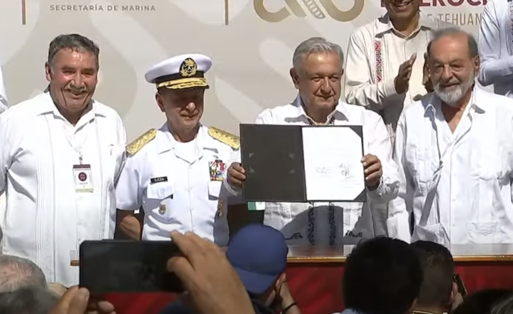 Esta firma se llevó a cabo al inicio de la ceremonia de la inauguración del Tren Interoceánico, en Salina Cruz, Oaxaca.