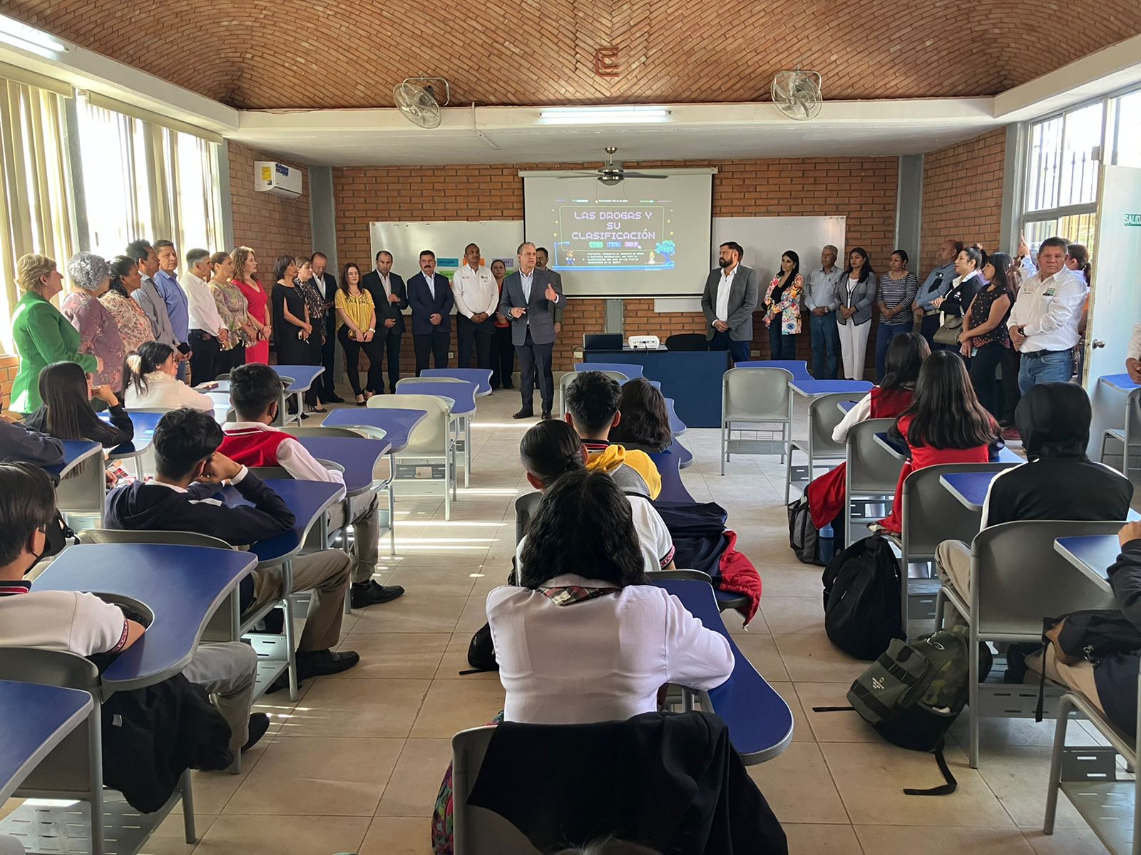Esta mañana, se impartió la primera plática breve en el aula y se habló con estudiantes sobre las drogas y su clasificación.
