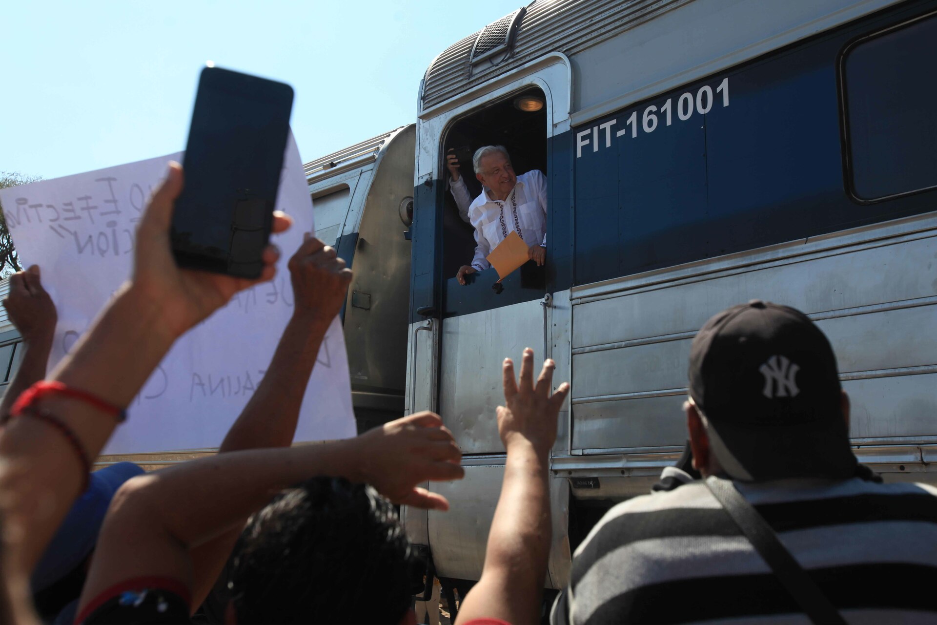 Del convoy también descendieron los gobernadores de Veracruz, Cuitláhuac García; de Oaxaca, Salomón Jara; de Chiapas, Rutilio Escandón, y de Tabasco, Carlos Merino.