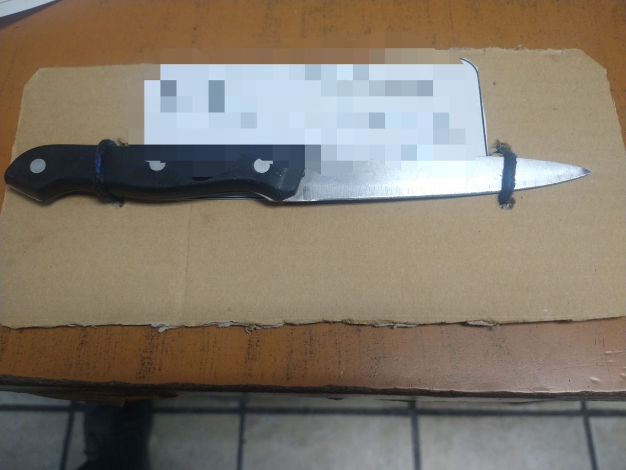 Los agentes se aproximaron al hombre para una inspección en la que le aseguraron un cuchillo de cocina de 25 centímetros de largo con mango de madera, con el que probablemente había lesionado a Carlos.